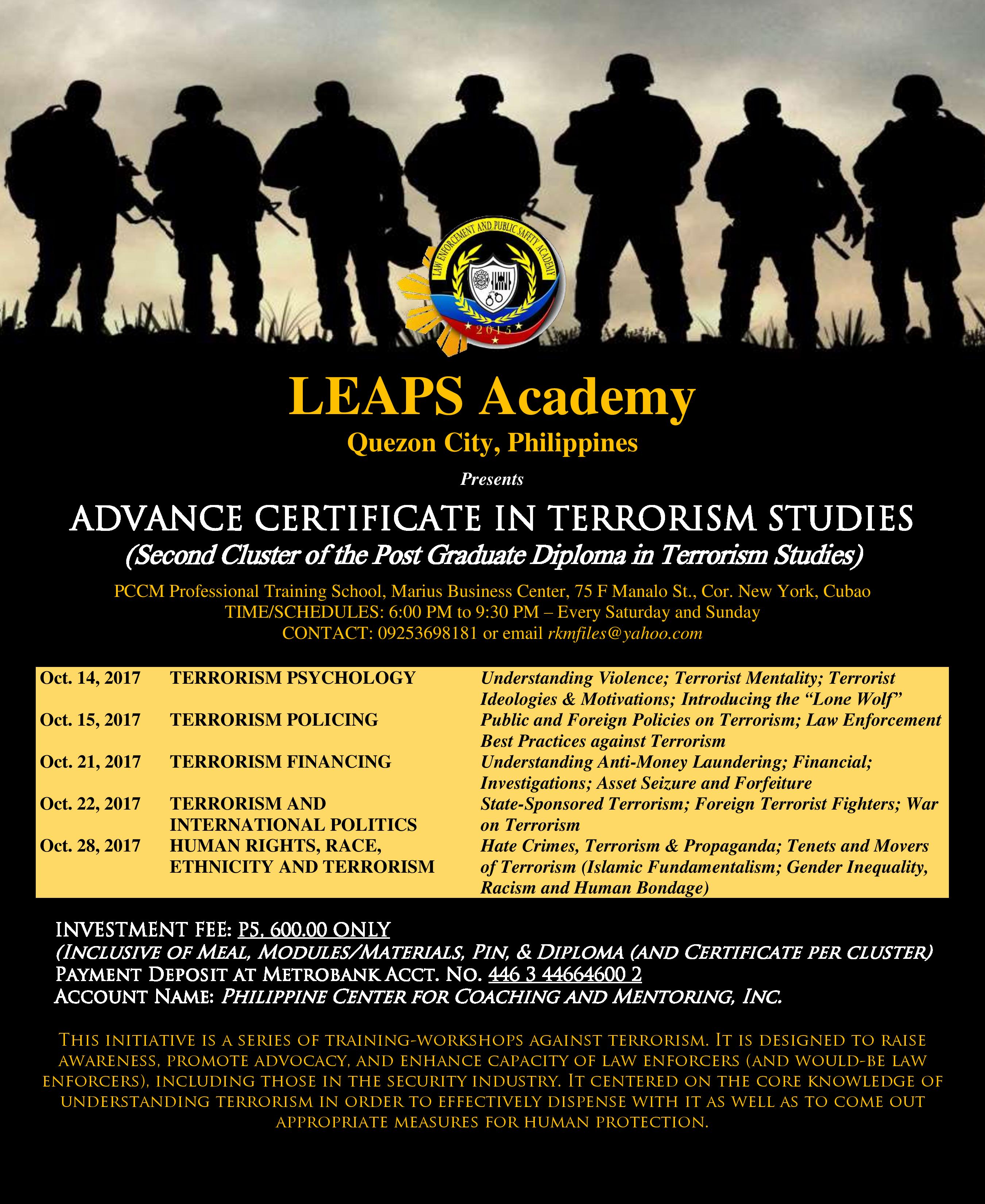 Oct. 15, 2017 TERRORISM POLICING - Public and Foreign Policies on Terrorism; Law Enforcement Best Practices against Terrorism